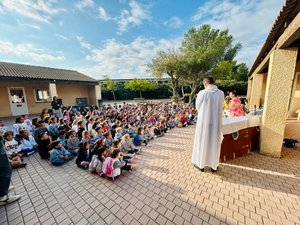 Ce mardi 17 septembre au matin, les élèves de l’école primaire Sainte Marie ont célébré la rentrée scolaire dans la cour de récréation de l’école avec toute la communauté éducative et le Père Jérémie.