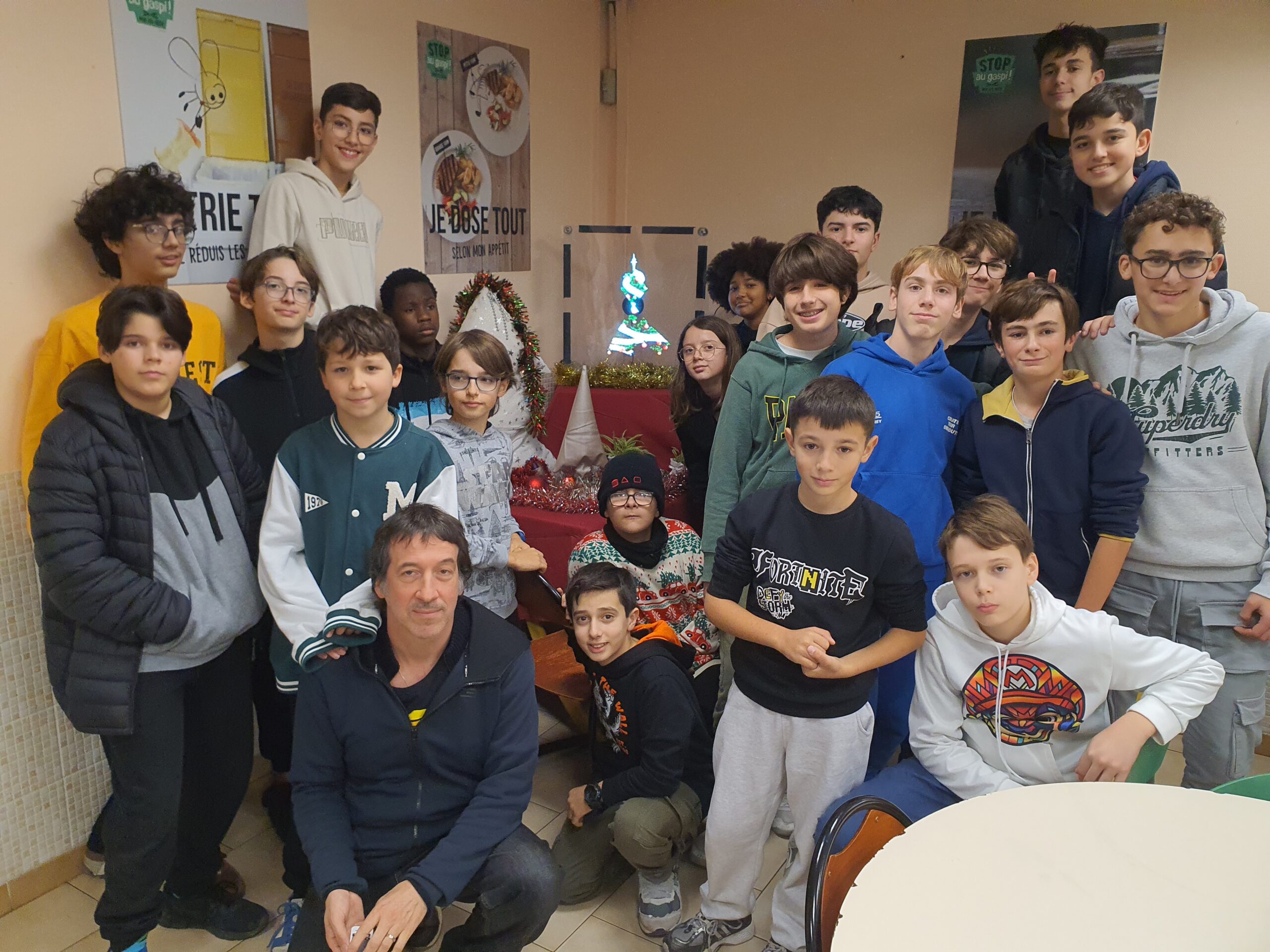 Les clubs « Techno » et « Club Vert l’Avenir et au-delà » vous souhaitent de très bonnes fêtes ainsi qu’une bonne et heureuse année 2026. Ils sont heureux d’exposer, dans la cantine, leur création de Noël réalisée à partir d’un hologramme.