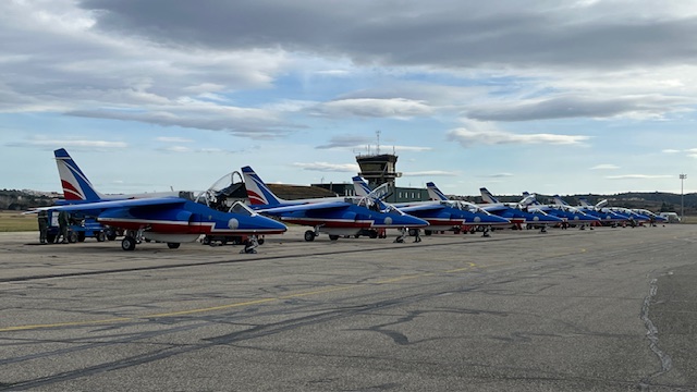 Devant les avions et les hangars gigantesques, nous avons écouté l’historique de la Patrouille, découvert son organisation et le quotidien des pilotes. Nous retenons notamment quelques anecdotes, selon lesquelles c’est le mécanicien qui choisit son pilote et que, si le leader est dans l’incapacité de voler, toute la patrouille reste au sol.