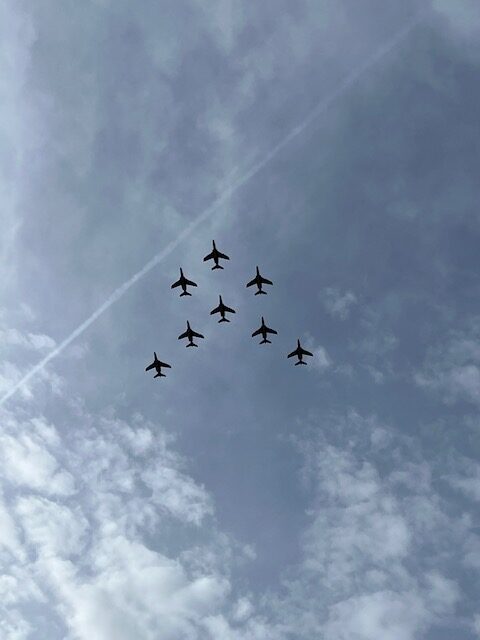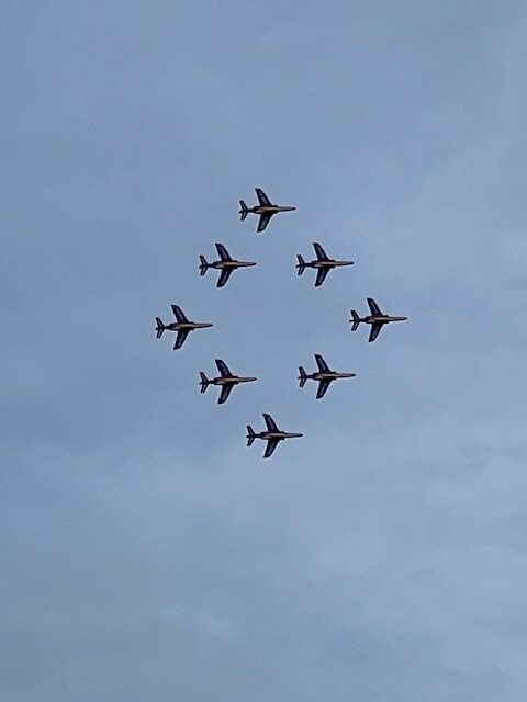 Nous avons assisté à une présentation des missions de l’équipe de voltige de l’Armée de l’air et de l’espace ainsi qu’à un rappel de l’histoire de la voltige aérienne.