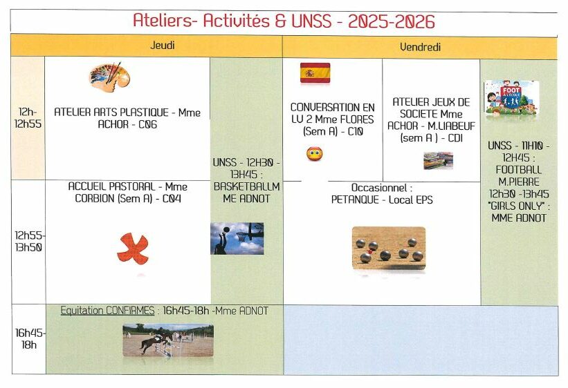 Les activités hebdomadaires des 3ème et du lycée : 2025 -2026